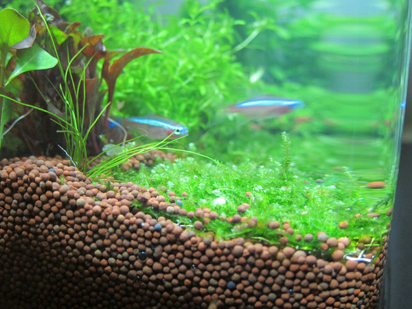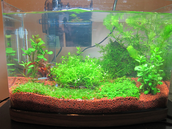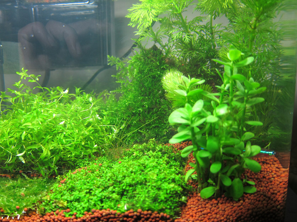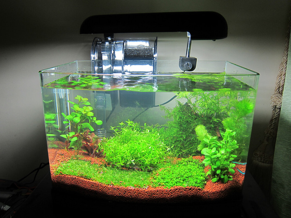 。於是買了一個一呎缸,13w小夾燈,和一個小型外掛,底沙,和一些水草,於是乎,小小草缸就這樣開缸了