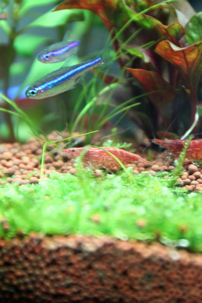 之前買的瑰玫蝦有幾隻懷孕了,可惜的是有二隻懷孕的蝦忽然死亡,死因不明。還有二隻暫時先隔離,因為爬文說剛出生的小蝦可能會變成燈魚的零食,先等小蝦生出來再看看。