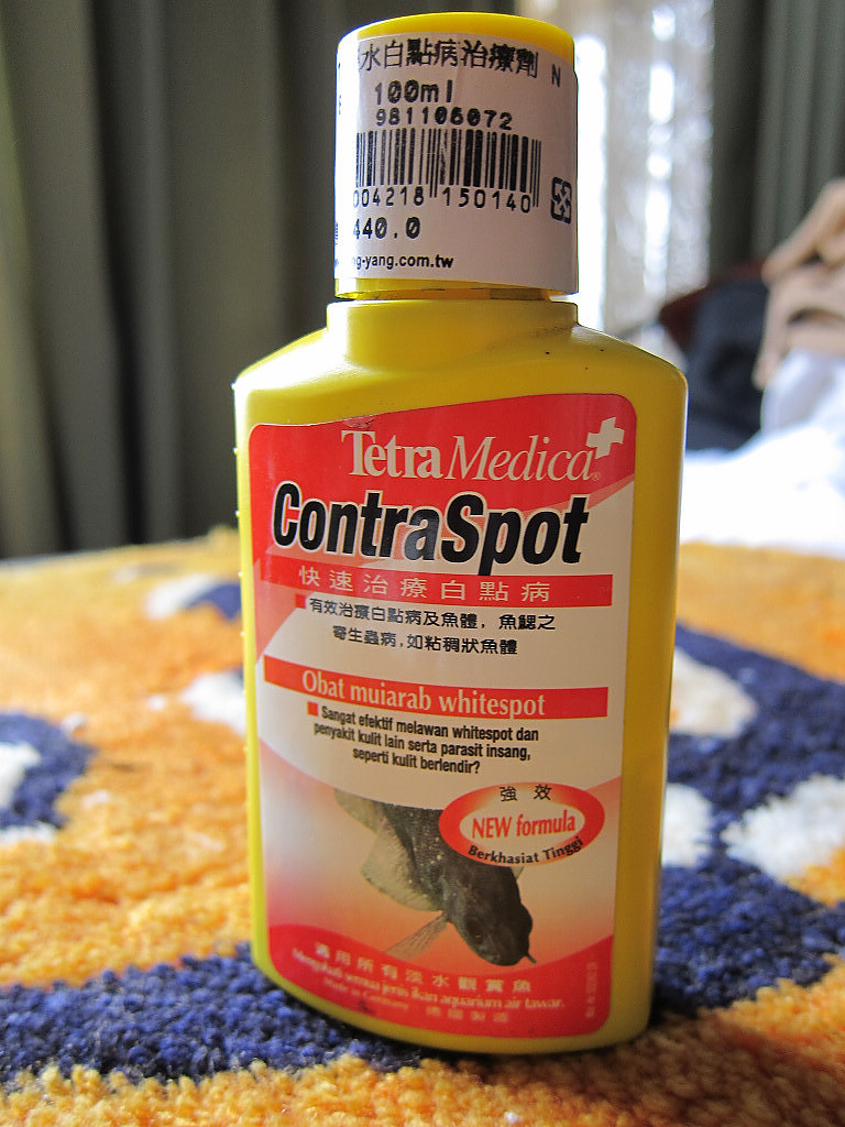 可能是日夜溫差大,也可能是新進魚隻就帶有白點,今天發現有數隻紅蓮燈上有不少白點,終於來了,養魚一定會遇到的病"白點病",記得小時候養的魚也得過白點病,不過都是下藥三天就好了,那時下的藥是藍色的,應該是甲基藍。於是馬上上網爬文,治療方法有很多種: 加溫 加藥 加粗鹽,先試試看這個方法好了。